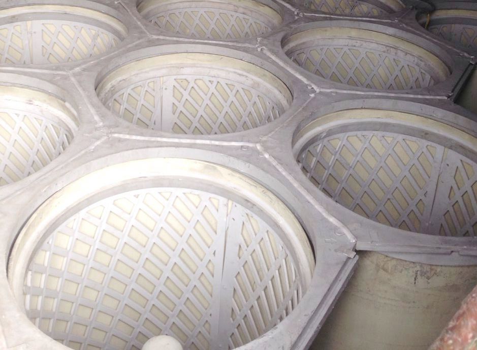 武漢晨鳴乾能熱電有限責任公司75t/h鍋爐煙氣脫硫吸收塔內設置4級管束式高效除霧器,粉塵排放濃度<5mg/Nm3,霧滴濃度<30mg/Nm3。