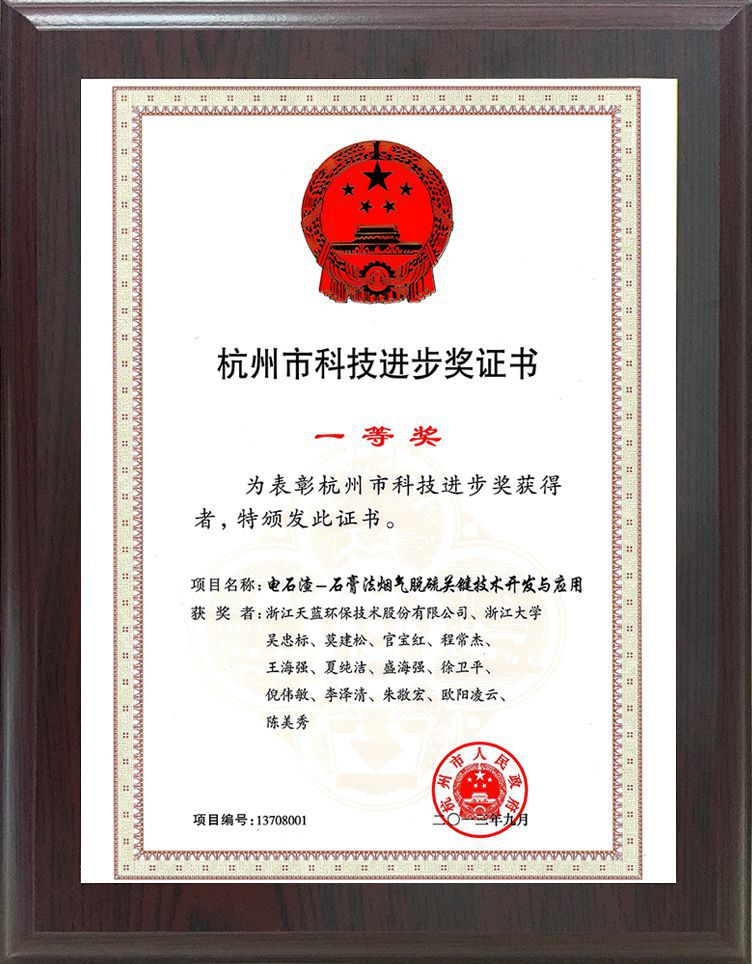 杭州市科技進步獎一等獎