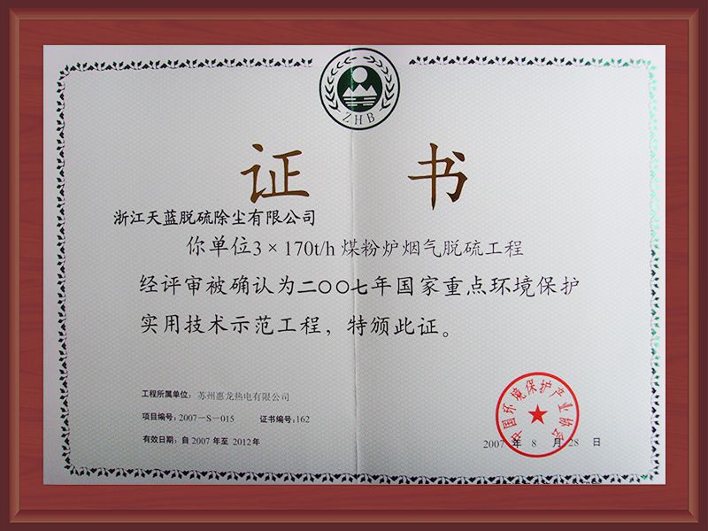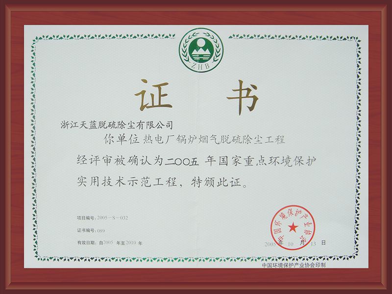 2020年重點環境保護實用技術和示范工程證書