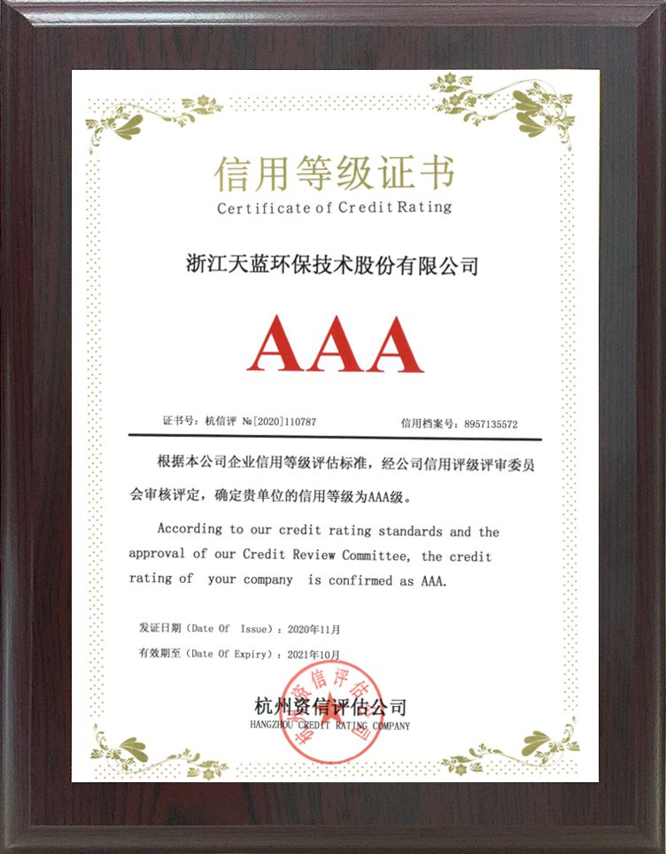 AAA信用等級證書2020.11-2021.10