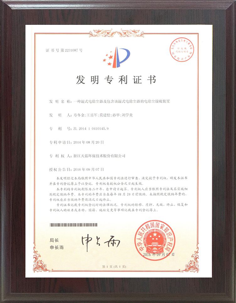 專利標準證書